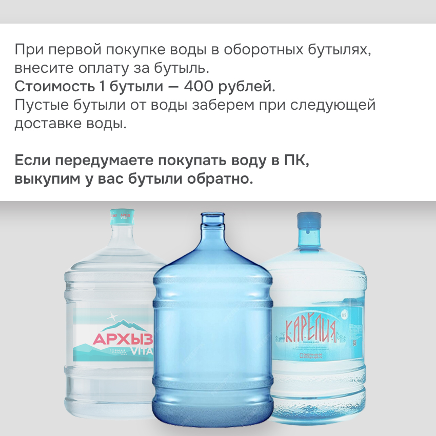 За оборотные бутыли первый раз оплачивайте залог — 400 р./шт.