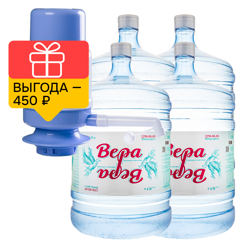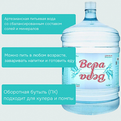 - Вода «Вера» 18,9 л ПК / 4 штуки (75,6 литров).